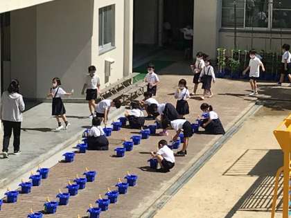 1年生は、今日も欠席がなく、全員が元気に学校に来ました。自由帳に絵をかいたり、アサガオのお世話をしたりと、学校での過ごし方を身につけています。