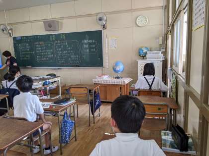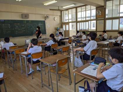 地球儀も使って、地図帳・資料集も確認しながら、日本の国土について学習したことを整理していきました。テレビに映った地図でもみんなで確かめ、位置や用語の共通理解をしました。
