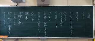 調べた言葉の中から、おもしろい言葉やむずかしい言葉を紹介し合いました。みんなで驚いたのは「ん」から始まる言葉です。