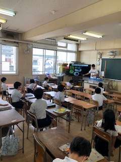 3年生の理科は、生き物の学習から始まります。生き物大好きな子どもたちは、大画面テレビに映る生き物の映像に興味深々。手を挙げて発表する姿もたくさん見られました。