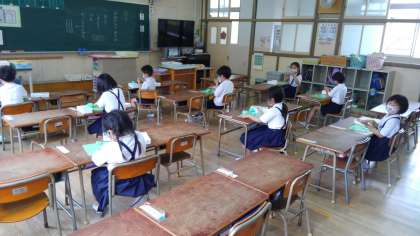 分散登校の2週間が終わりました。今週は、雨が多かったので休み時間は、教室で粘土をしたり、友だちと一緒に「がっこうたんけん」をしたりと、工夫して過ごしていました。Bグループも、しっかりと説明を聞いて、聴力検査もできました。