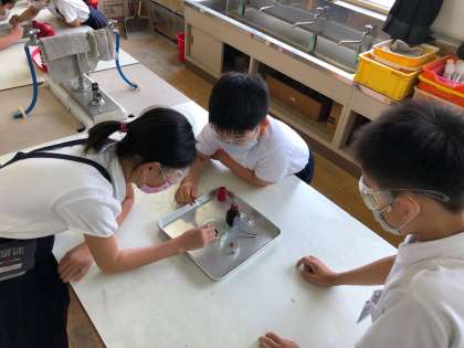 コロナウイルス感染症の拡大予防として、安全メガネをつけて実験を進めました。