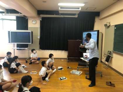 6年生では、今年度初めてのC-NET活動がありました。今年からモリス先生が担当の先生となり、今日はそのモリス先生の自己紹介でした。ほとんど英語を使った自己紹介でしたが、ジェスチャーと写真を交えながら楽しく紹介してくれたおかげで、子ども達はとても楽しく分かりやすくモリス先生のことを知ることができました。これからのC-NET活動が楽しみです!