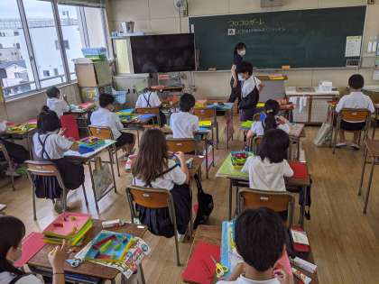 図画工作科では「コロコロガーレ」を学習しており、ダンボール紙などのじょうぶな紙を使って、ビー玉を転がす迷路を作っています。子ども達の自由な発想で、面白い作品がたくさん出来上がりそうな予感がします。