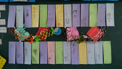 教室の後ろの掲示板に飾ってありますので、懇談会にお越しの際は、お子さんの願い事をぜひチェックしてみてくださいね。