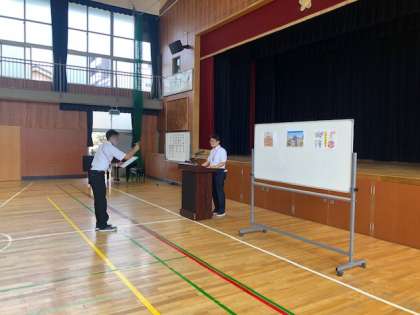 そして、3年生・6生の代表児童が1学期を振り返る作文の発表をしました。それぞれ頑張ったこと、乗り越えてきた緊張感などを上手にまとめていました。聞き終わった際には、各教室からみんなが拍手を送っていました。