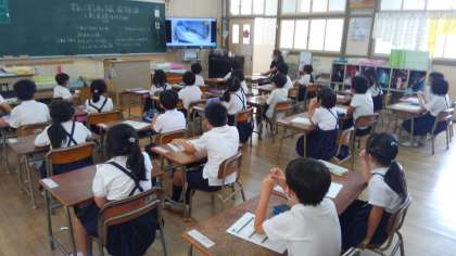明日の避難訓練を前に、事前学習を行いました。東日本大震災で実際にあった出来事をまとめたDVDを視聴し、自分たちで正しい判断ができるように、日頃から考えたりしておくことが大切だということを学習しました。映像を観る子どもたちの表情は、真剣そのものでした。