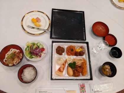 蓋を開けると、「おおっ」という声が聞こえてきました。豪華なおかずに舌鼓。しっかり食べて、今日の疲れを取りましょう。