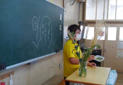 生活科の学習のため、鶴賀先生に秋の草花について教えていただきました。ススキやリンドウなど、秋の訪れを告げてくれる植物や虫。九条南公園でも、セミに代わって、コオロギやスズムシなどの声が聞こえるようになりました。耳や目など五感を使って、お子さんと一緒に小さな秋探しをしてみてください。