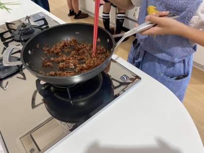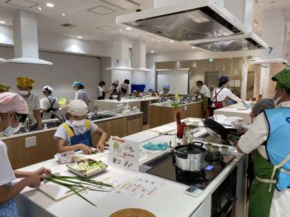 18日(金)にハグミュージアムで、エコクッキングを行いました。先週の(月)から、学校で調理の準備や後片付けの仕方、お湯の沸かし方、包丁の使い方などを学習しましたが、本格的に調理実習をするのは今回が初めてです。子どもたち3〜4人に1人のスタッフがついてくださり、丁寧に教えてもらいました。お鍋でご飯を炊いたり、お味噌汁のおだしで使ったかつお節でふりかけを作ったり、子どもたちは休む暇なく調理に集中していました。できあがったものを「おいしい!おいしい!」と言いながら食べ、充実した一日を過ごすことができました。レシピが載っているチラシを持って帰っています。ご家庭でも親子でチャレンジできるといいですね。