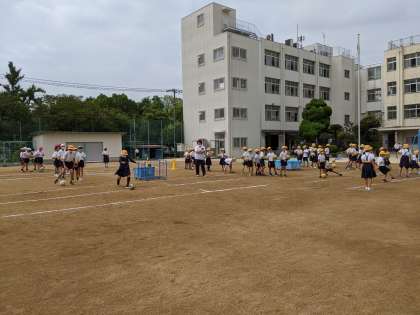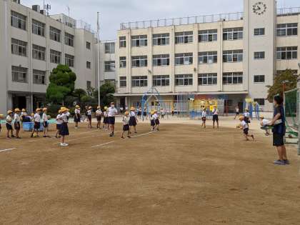 スポーツ委員会が朝から準備をして、運動の場を設定してくれました。