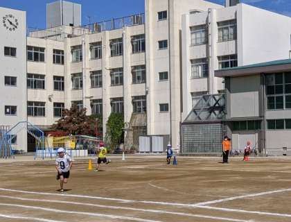 2年生は運動会で折り返しリレーを行います。バトンは一人一人が持ってタッチします。元気いっぱいの2年生、勝ちたくて仕方がありません。負けた悔しさを次の練習に生かして、本番に向けて練習を積んでくれることでしょう。その練習の積み重ねが大切です。