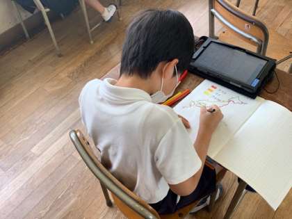 調べるために活用するものも自分たちで考え、本やタブレット、パソコンなど人によって違います。まとめ方もこれまでに学習したことを生かして、新聞形式でまとめている人やポスターのようにまとめている人もいます。