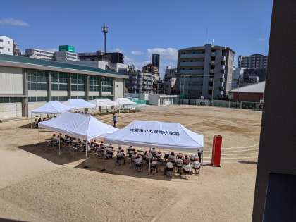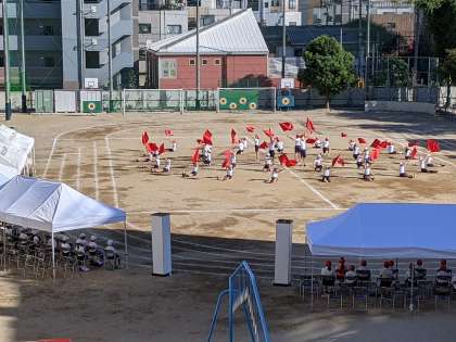 2学年ずつ合同練習を行いました。運動会当日と同じように会場を設営し、いつもと違う座席配置、退場門の位置、スタート・ゴールの位置などたくさんのことを確認しながら行いました。