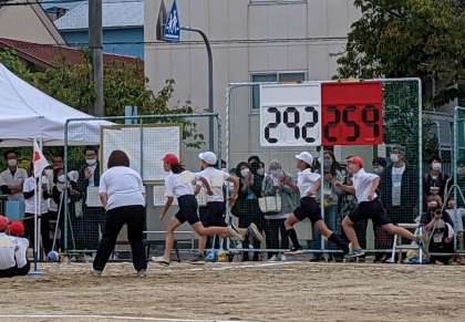 個人走、リレーともに、走るフォームやスタートの練習をしっかり行い、本番に臨みました。特にリレーでは、チームごとに練習を考え、日々チーム力を高めていく姿が見られました。バトンパスは、どのチームも本番が一番スムーズにできていました。