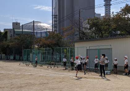 今週は、1学期に実施できなかったスポーツテストの種目を実施しています。運動場では、50m走とソフトボール投げを行っています。1学期は、プール工事もあって、できなかった種目です。また、講堂では、コロナウィルス感染症拡大防止のために実施を見送っていたシャトルランと上体起こしを間隔を取って実施しています。子どもたちはどの種目にも一生懸命全力で取り組んでいます。
