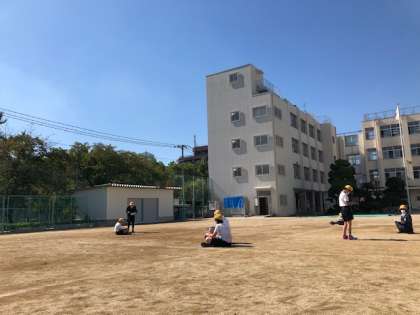 まず、運動場に出て、雲の量や色、動きや天気を調べました。午前9時・正午・午後3時の3回観察しました。