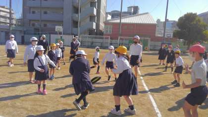 今日から12月1日まで、たてわり班あそびとしてドッジビーカーニバルが行っています。高学年のお兄さんお姉さんが低学年にドッジビーを「投げる?」と渡したり、班の仲間と協力したりしながら、楽しく遊ぶことができました。