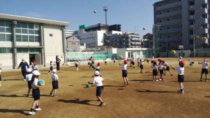 1年生は、体育で縄跳びとボール運動に取り組んでいます。