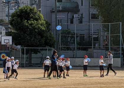 投げる運動では、手首を使って投げるディスクも使って楽しく活動しました。