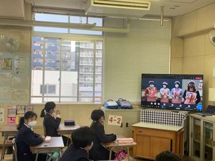 Teamsを活用して全校朝会を行いました。今週から、北風が強まり、寒さが厳しくなってきました。12月21日は「冬至」です。冬至の日に行う、さまざまな伝統的な行事について、校長先生からお話がありました。
