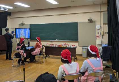 また、地域の読書ボランティア「よもよもさん」からは各学年に本と読み聞かせのクリスマスプレゼントをしていただきました。
