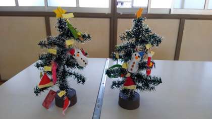 手づくりクラブでは、「クリスマス」の飾りを作成しました。雪だるまやリースなど、フェルトを使って思い思いの作品ができあがりました。一人一人の作品を集めて飾ると、かわいらしいツリーになりました。1学期に比べ、針に糸を通したり、玉結びをしたりすることにも慣れ、上手にできるようになりました。完成した作品はみんなに見てもらえるように、図書室前に飾っています。