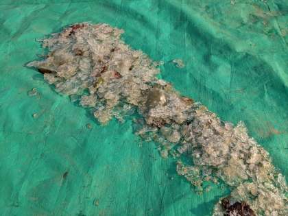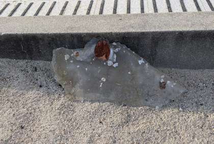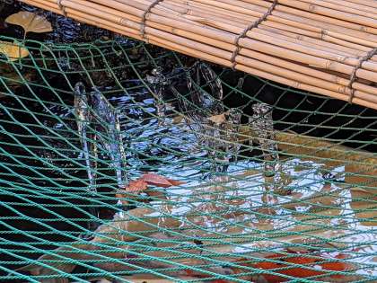 寒い朝でした。ここかしこに氷が張っていました。プールも少し氷が浮いていました。写真は、池の上のネットにつららができている様子と、砂場のシートの水たまりが凍ってできた氷です。明日にかけてまだ寒い日が続くようです。風邪などひかないように過ごしましょう。