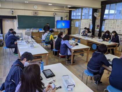 今日の放課後、プログラミング教育の研修会を行いました。この時期なので、ソーシャルディスタンスや換気に気を付けて行いました。