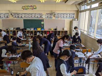大きな半紙に書くのは初めてで、とても難しそうでしたが、字の大きさやバランスを考えながら、しっかりと立派な字を書くことができました。