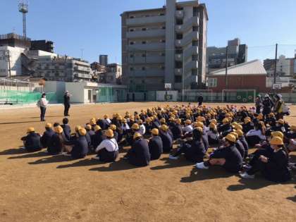 1995年1月17日午前5時46分、突然大きな地震が起きました。地震はいつおこるか分からないことを実感するために、今日の避難訓練は事前に子ども達には伝えず、休み時間に実施しました。