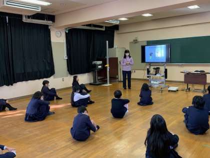 保健室の日與川先生から、体調管理について・体温計の測り方・リラックスする方法など保健に関するお話がありました。みんな熱心に聞き、リラックスする方法をたくさん出し合いました。