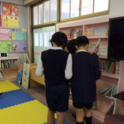 5年生は2/17図書室で総合的な学習の時間の取り組みを行いました。