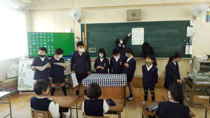 生活科 2年生が1年生にぱっちんガエルの遊び方を教えてくれました!