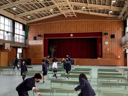 春休み期間中ですが、頼りになる九条南小学校のリーダー達が登校し、明日の入学式の前日準備・校内清掃を行ってくれました。