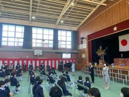 校長先生から1年生の担任の先生と、あおぞら学級の担任の先生、養護教諭、事務職員、管理作業員、給食調理員の紹介がありました。