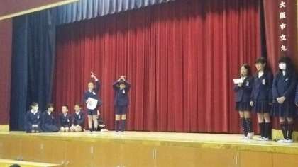 今日の集会は『この名シーン何だっけ?』です。ドラマや映画に出てくる有名なシーンを舞台上で、集会委員の名役者の子どもたちが再現。ピアノやCDのBGMに、紙吹雪!小道具もばっちり揃えて、さあ本番!いつも6年生の集会委員が中心となって、いろいろと面白いアイデアを出しています。そんな集会も残すところ、今年度あと1回となりました。ラストの集会はどんな会になるのでしょう?楽しみに待ちたいと思います。