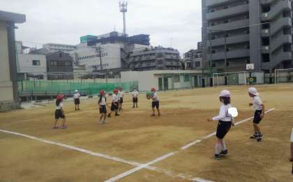 必死に逃げ回る子、ボールをしっかりと受け止めて投げる子、様々ですが、投げるボールを譲り合いながらクラス全員が声を掛け合って、楽しく試合ができました。