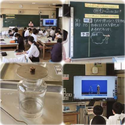 「ものが燃えるとき、空気中の気体にはどんな変化があるのだろうか」という問題について学習しました。