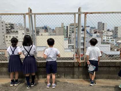 「北には、わたしのおうちがある!」「西には、京セラドームがあるね」など、友だちと話し合いながら、見つけることができました。