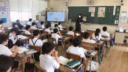 4年生では、道徳の教材「さち子のえがお」を使って学習をしました。してはいけないことを見たり、さそわれたりしたときに、どのように行動すればよいかについて考えました。子どもたちは、「だめだと言ってあげる」「大人になったときに困らないように止める」と、それぞれ真剣に考え、自分のノートにまとめていました。