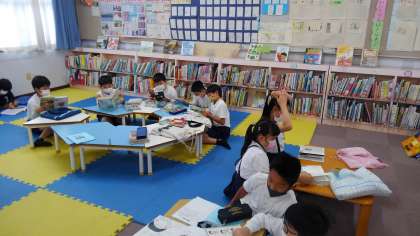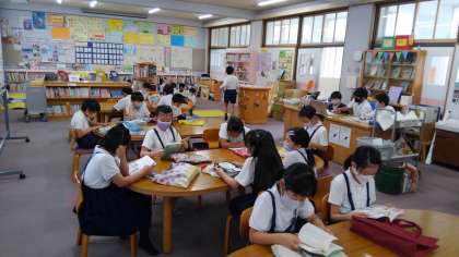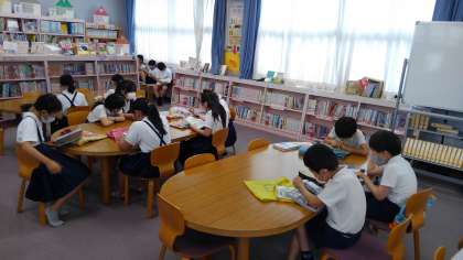 今日より1時間目からの学習が始まり、久しぶりに図書の時間ができました。これまでは、借りていた本を返し次の本と交換するという時間しか取れなかったのですが、今日はゆっくりと座ってお気に入りの本を読んだり、友だちと一緒に楽しそうな本を探したりして過ごしていました。