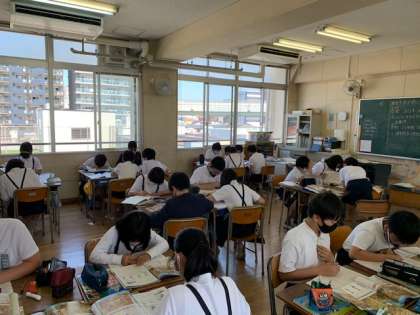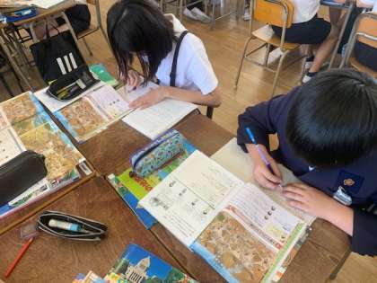 6年生の社会科では、いよいよ歴史分野の学習が始まりました。教科書の資料を読みながら大昔の人々のくらしについて考察しました。「衣食住」の観点ごとに気づいたことにいて話し合いました。