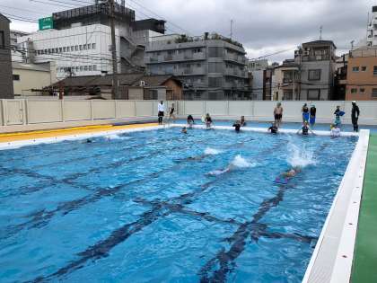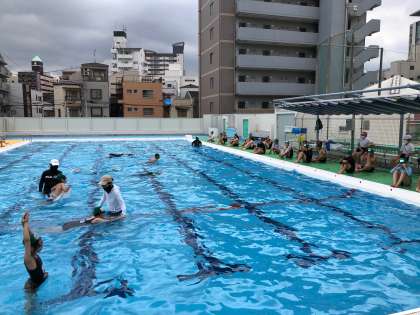 今日は水慣れをしたり泳いだりしました。「久しぶりだからしんどかったけど楽しかった」などの声が聞こえてきました。次のプールは明後日で、泳力を測る予定です。