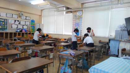 放課後、「コロコロガーレ」で使った紙の切れはしが床にたくさん落ちていました。それに気づいた子どもたちが、自分たちで掃除を始めました。「みんなのために」という気持ちが素敵です。おかげで、明日も気持ちよく過ごせそうです。