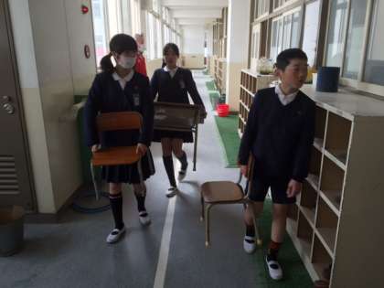 4年生と5年生が机といすの大移動