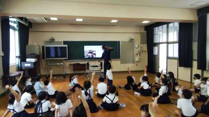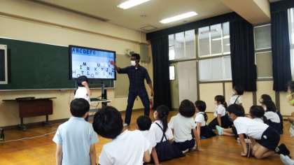 モリス先生との久しぶりのEnglishtimeでした。2年生の子どもたちは、元気いっぱいにアルファベットの順番を正確に答えようとモリス先生と対決しています。