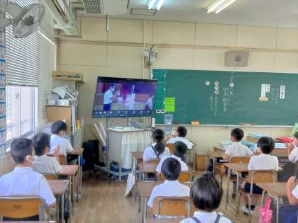1学期の終業式を無事に終えることができました。今回の終業式は、6年生が代表として講堂で式に参加し、他の学年はそれぞれの教室でTeamsでの参加となりました。テレビを通してですが、1学期の節目として、子どもたちは背筋をピンと伸ばし、最後まで集中してお話を聞いていました。その後ろ姿に、4月から子どもたちがしっかりとがんばり、成長してきたことが改めて感じられました。