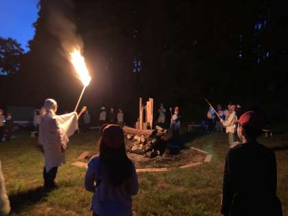 火の神の登場で、組まれた薪に火がともりました!