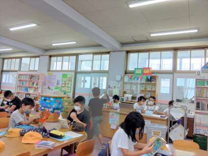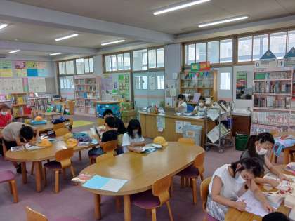 今日は9時から、4年生の図書館開放がありました。夏休みが始まってまだ1週間ほどですが、久しぶりに友だちの顔を見て、嬉しそうでした。今日参加した子どもたちは、約20名。本を読んだり、宿題をしたりと、思い思いに過ごしていました。